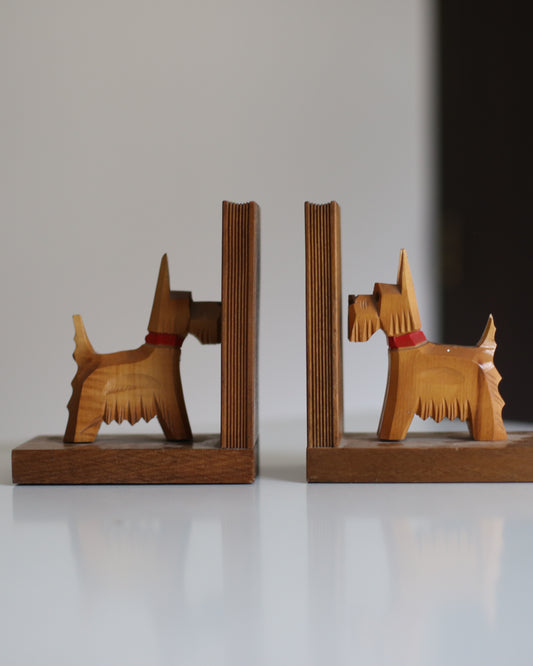 Vintage Wooden Dog Bookends